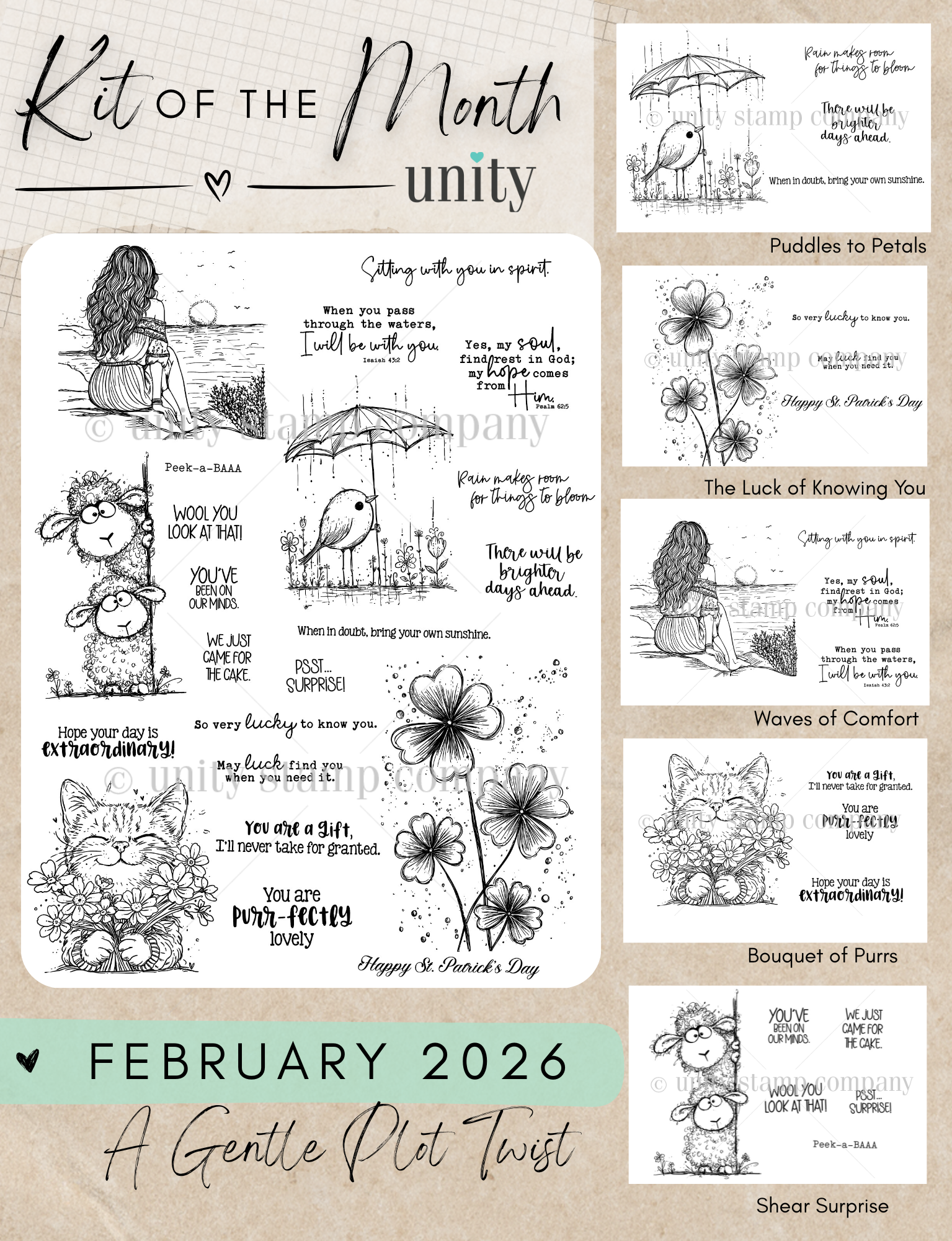 This is a PAST kit of the month. This is a full 8.5 x 11 sheet of un-mounted deeply etched red rubber stamps. All past collector's kits are available for $62, however, joining our monthly KOM kit club will qualify you for the CURRENT MONTH'S kit...