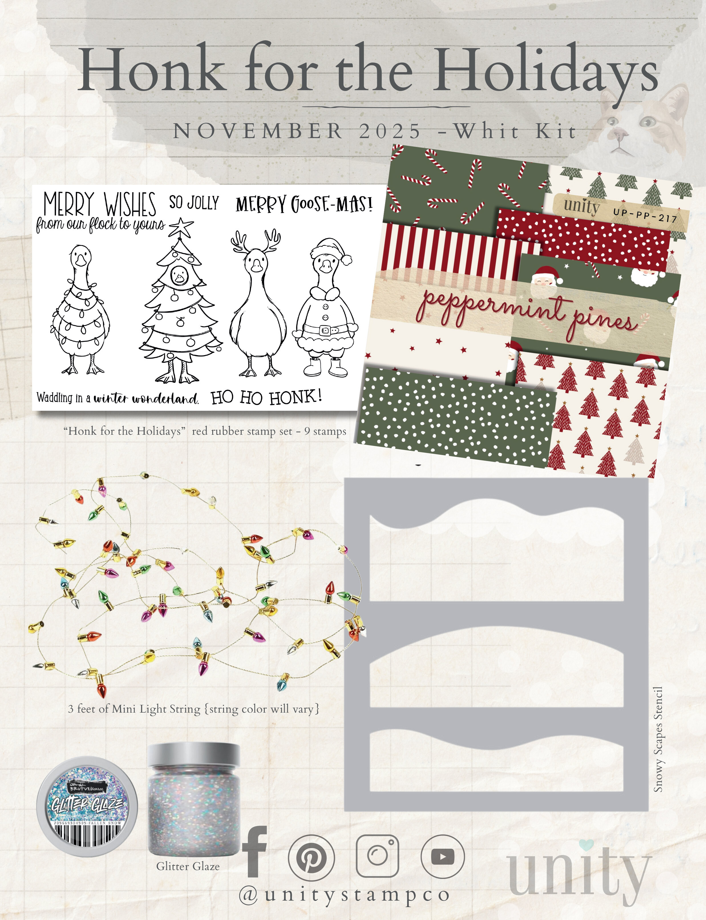 This playful 9-piece red rubber stamp set was originally part of our September 2025 Whit Kit and is now available for individual purchase! Featuring Halloween themed geese, plus playful sentiments to match...