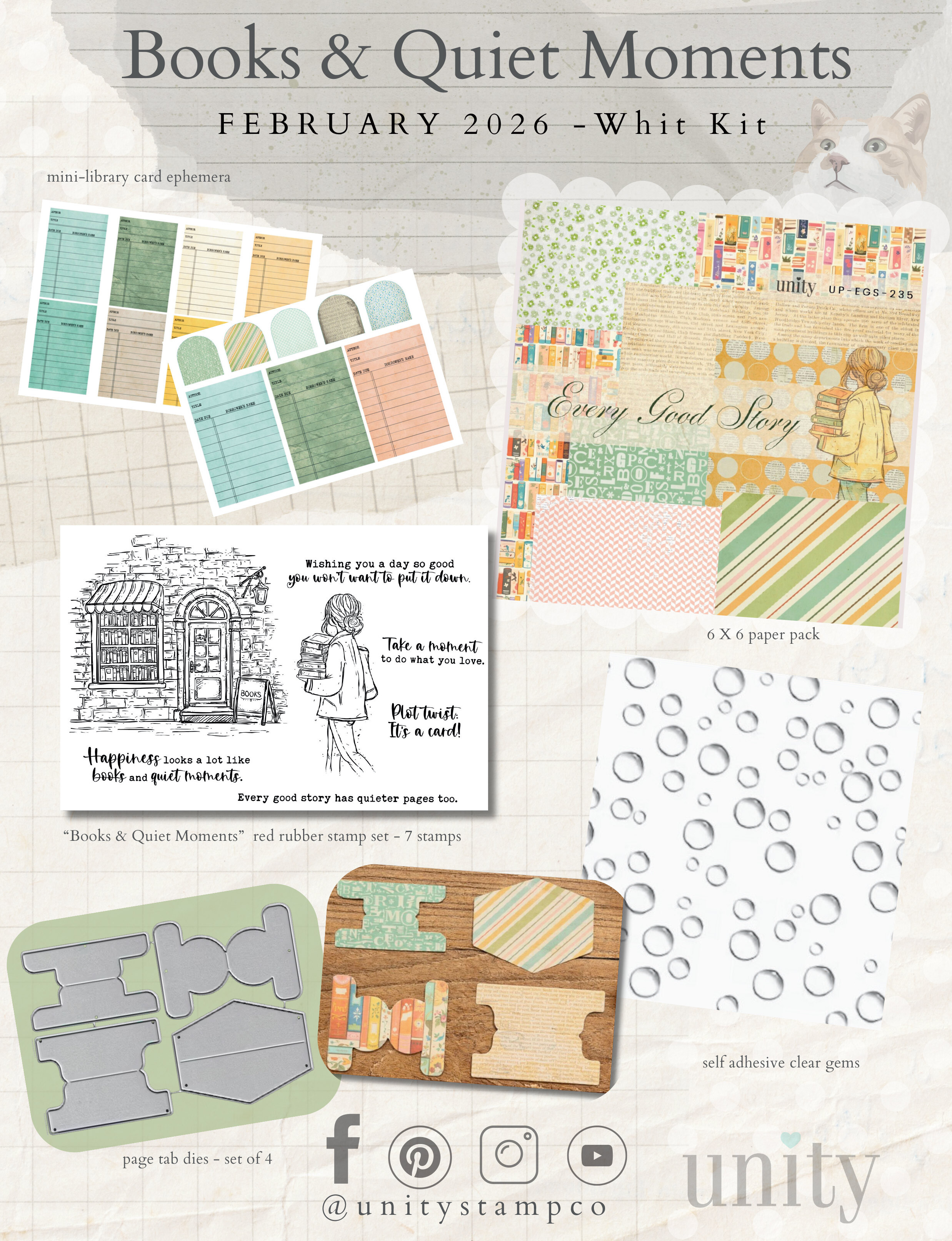 This monthly card kit membership and will include an exclusive stamp set, pattern paper pack, and a variety of embellishments or supplies that coordinate each month.